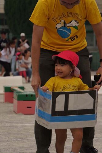 保育園の運動会 娘の保育園の運動会。父方の祖母と伯父、母方の祖父母と叔母と従姉妹が来て、大応援団。やり過ぎじゃね? 娘が出る競技の一つは、かけっこ。昨年は一人でかけっこというのはなかったが、今年は親がゴールで待ち構えて子供はそれめがけて走る…