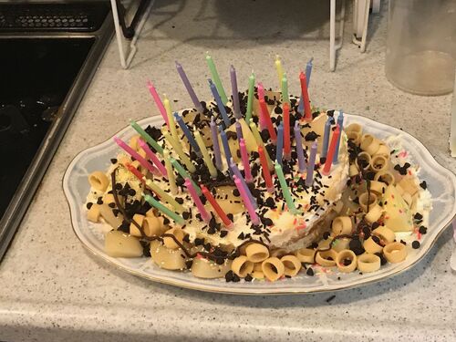 カミさんの誕生日。 昼食はパスタ。アリモノ・オーリオ。有りものの具材を適当に油で炒めるだけ。調理人の腕が悪いので美味しくはないね……。 アリモノ・オーリオ・スパゲッティ 娘は自発的にケーキを作る役を買って出て、父とスーパーで買ってきたケーキ台の…