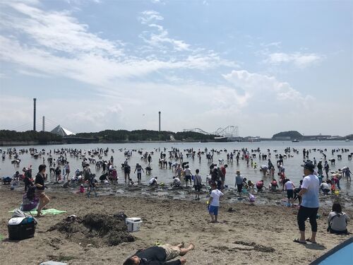 横浜海の公園へ、潮干狩り。友人一家を誘って。 前回、同じ海の公園へ同じ友人一家と行ったのはどうやら3年前。友人一家の下の娘さんが生まれる直前だった。 前回はすごく寒い日だったが、今回は逆に夏の暑い日。水に入っていた皆はちょうどよかったようだが…